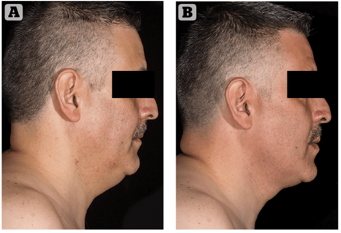 Cryolipolysis was the first device to successfully reduce fat non-invasively (Coolsculpting). Using a suction handpiece to cool the fat layer, it reduces the fat layer by 15–25% depending upon the area of the body treated. It has been used on the trunk, extremities as well as on submental fat. A 1060 nm diode laser was the next development in non-invasive fat reduction (SculpSure). It reduces a similar amount of fat as cryolipolysis and can treat the same areas of the body. Its advantages over cryolipolysis include four individual applicators that can treat multiple areas at the same time and due to the heat of the laser, produce skin tightening as well4. Both technologies require two to three treatments for effective results but have the advantage of being hands-free without the need for a technician to apply the treatment. Other devices utilizing radiofrequency and ultrasound have also been used to reduce fat non-invasively but often require quite a few sessions for effective results and require a technician to conduct the therapy.