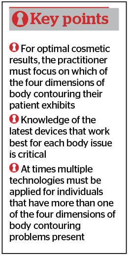 Advances in body contouring techniques continue to evolve. With the advent of muscle toning and sculpting, we have just added the fourth dimension to the three dimensions of skin tightening, fat reduction and cellulite treatments. These technologies are improving in efficacy while becoming less invasive with less downtime and fewer adverse events. It is an exciting time to be offering body contouring procedures to our patients.